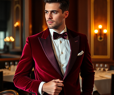 Reiche Burgundy-velvet Dinnerjacket für intimate formelle Zusammenkünfte und besondere Anlässe.