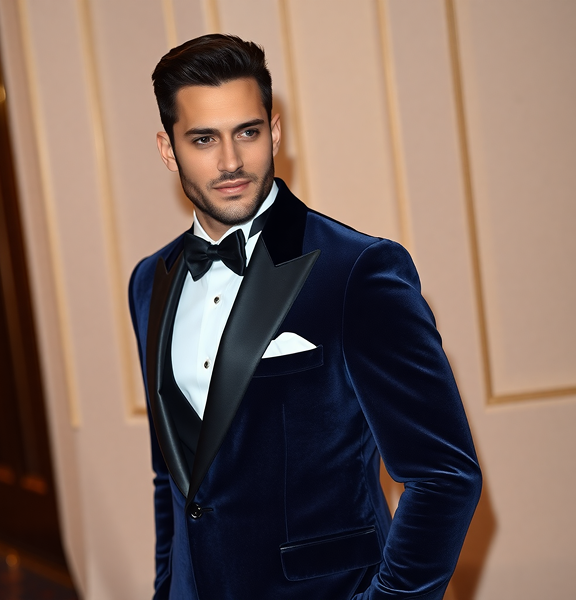 Samtige Smokingjacken, Revers mit Seidenbesatz und dezente metallische Akzente fangen das Licht unter der Partybeleuchtung wunderschön ein. Diese Stücke sind für den modernen Gentleman entworfen, der Tradition schätzt, aber keine Angst hat, ein Statement zu setzen.