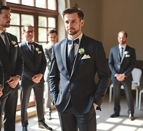 Ihr Hochzeitstag verdient nichts weniger als Perfektion. Unsere Schneidermeister sind darauf spezialisiert, Anzüge zu kreieren, die nicht nur perfekt sitzen, sondern auch Ihre einzigartige Persönlichkeit widerspiegeln und das gesamte Hochzeitsthema ergänzen.