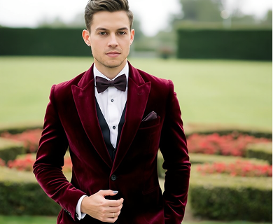 Reichhaltiges burgunderrotes Samt-Dinnerjacket.